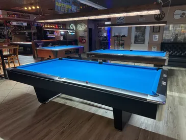 $5 All day play on 9′ pool tables.